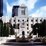 1st Row, L to R: Atrium, Exterior - Pools, Exterior - Flower Street Entrance, Children's Literature Dept.