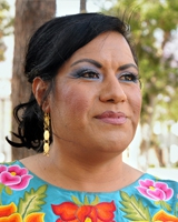 Maritza Sanchez is from Santa Ana del Valle, Oaxaca, and migrated to LA in the 90s as a teenager. As a child, she recalls her sexual orientation changing when she found out she was attracted to men. She only felt comfortable “coming out of the closet” in Los Angeles, a place that felt safe and where she’d be tolerated for her sexual preference. Sanchez identifies as transgender and as “muxe,” a Oaxacan, Mexican designation from the Zapotec Isthmus region of the state. After many decades of working with others to promote tolerance of others regardless of sexual orientation, she is respected and admired by the community in her hometown. She was crowned the queen of the “Vela Muxe” in Los Angeles in 2014.