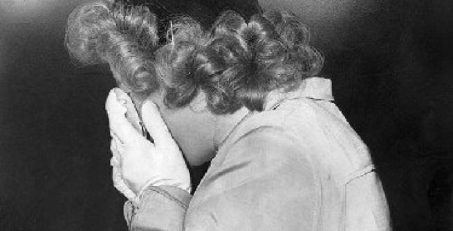 Mrs. Jack Whalen, moments after identifying her slain husband's body. (Valley Times Collection, 1959) "Realize that private people have a greater right to control information than public figures", SPJ Code of Ethics.
