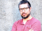 Joy Harjo wearing a red shirt and jeans showing her tattooed hand