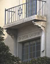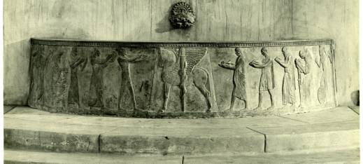 The two relief panels that originally framed the doorway to the Music and Art departments represent figures from ancient Greece (for music) and Egypt (for art). The panel for music bears a quotation from Job 28:1 “The morning stars sang together and all the sons of god shouted for joy.” The panel representing art carries a quotation from Psalms 19:1 “The heavens declare the glory of god and the firmament sheweth his handiwork." Above the doorway was an inscription paraphrased by Alexander from Plato’s Phaedrus: “Love of the beautiful illuminates the world.”
