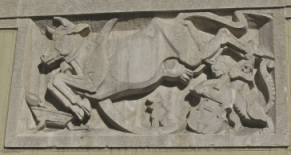 | Lee Lawrie: reliefs of The Sword in the Stone and The Cow Jumped Over the Moon from the Children’s Courtyard | |