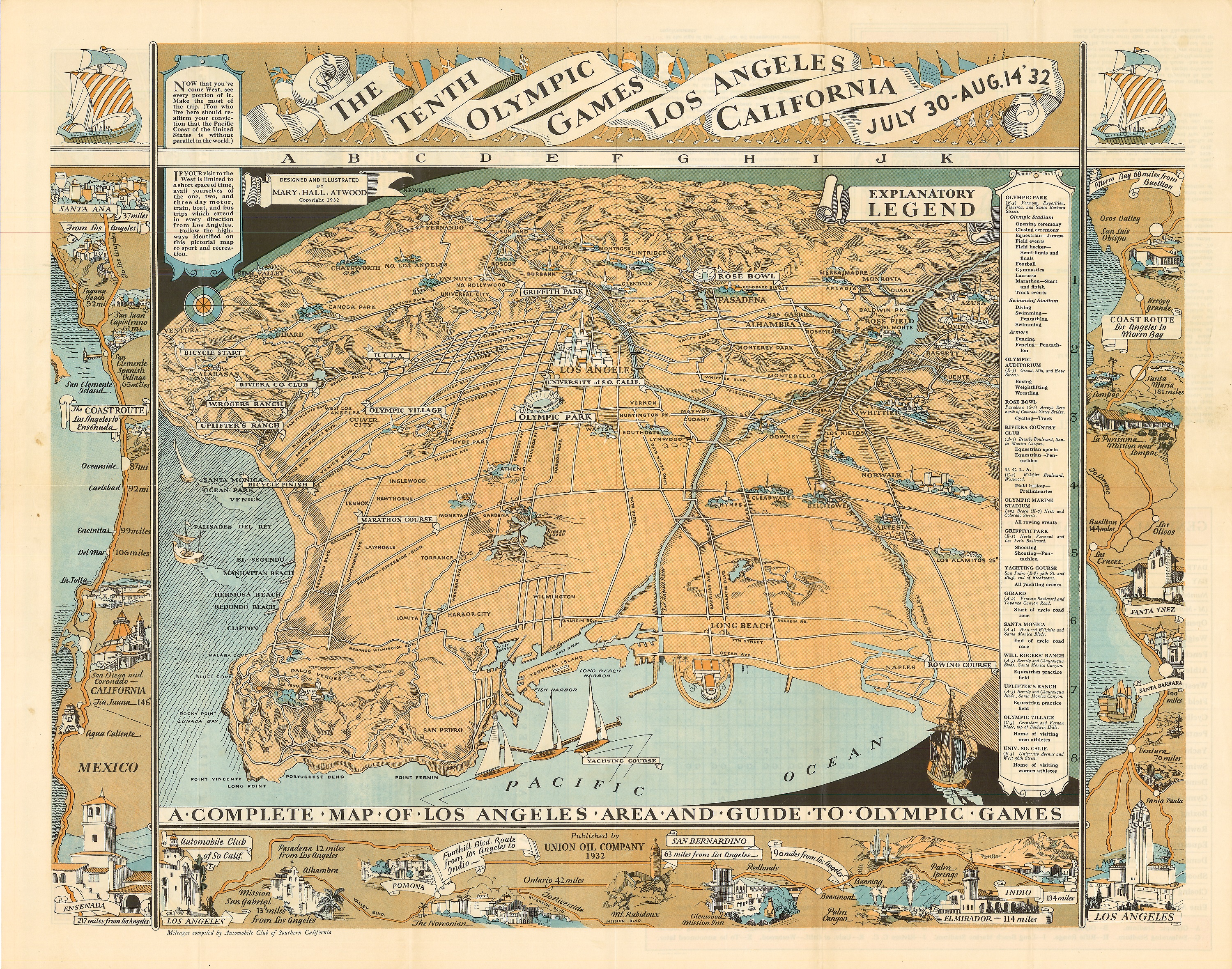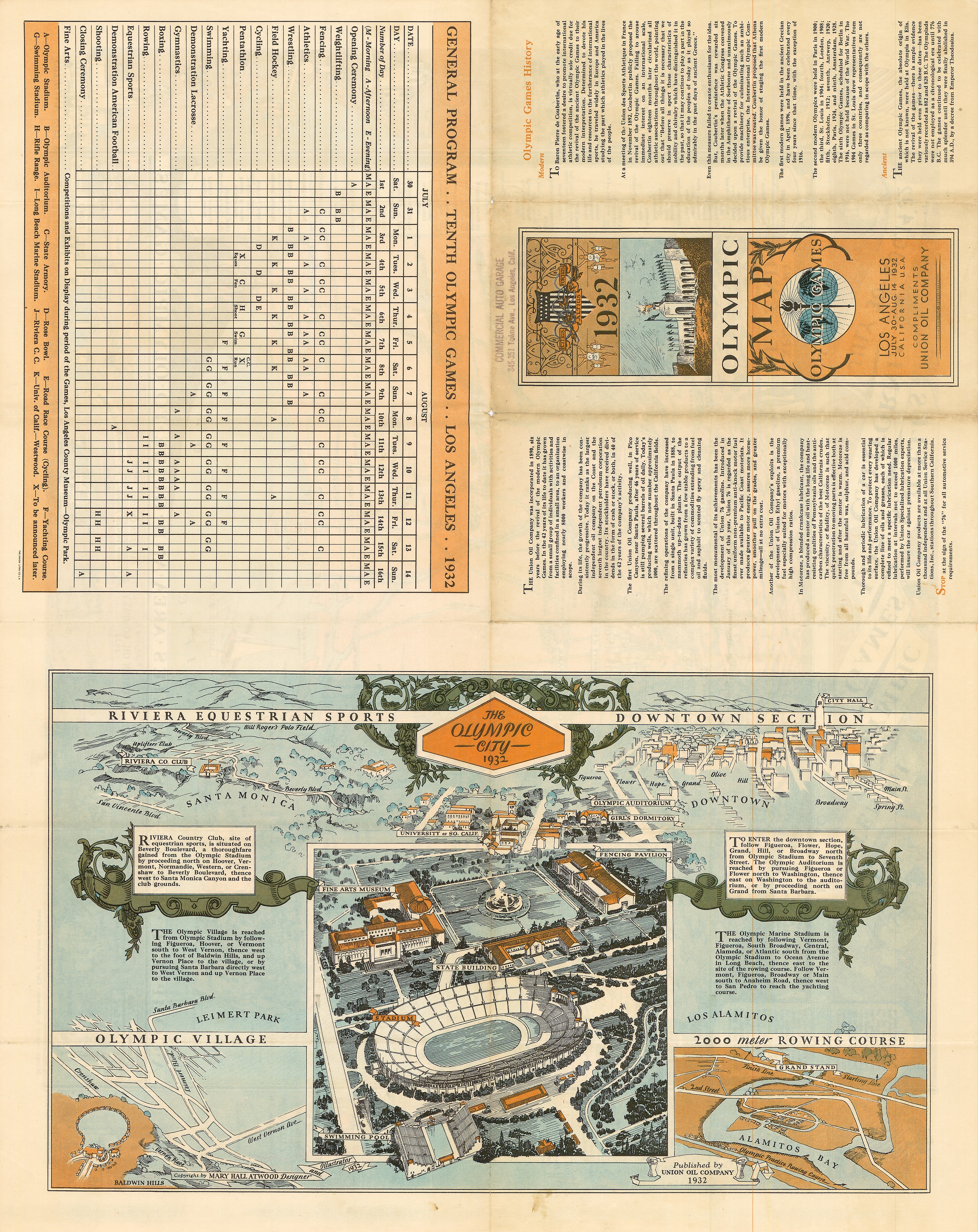 1932 Olympic Map, Olympic Games Los Angeles. Cartographer Mary Hall Atwood, Compliments of Union Oil