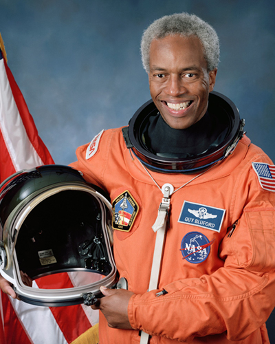 In 1983 as a mission specialist aboard the space shuttle Challenger, Bluford traveled in space for the first time. He was also the first African American to return to space by completing three more NASA missions, compiling 688 hours in space by the time of his retirement in 1993. He was awarded fourteen honorary doctorate degrees and was inducted into the International Space Hall of Fame in 1997 and the U.S. Astronaut Hall of Fame in 2010.