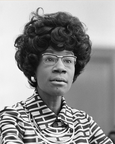 Elected in 1968 to represent New York State, Chisholm served for seven terms in the U.S. House of Representatives. She helped establish the Congressional Black Caucus and the Congressional Women’s Caucus. In 1972 she ran for the Democratic nomination for the presidency, becoming the first major-party African American candidate to do so. The nomination went to George McGovern who, lost to Richard Nixon.