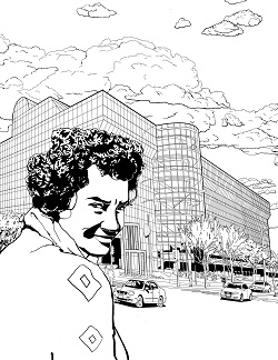 Sklarek is pictured in front of the Pacific Design Center, a facility with many showrooms to showcase interior product designs to interior designers, architects, decorators, and dealers. The space was opened in 1975 and Sklarek contributed to the architectural design of the building.