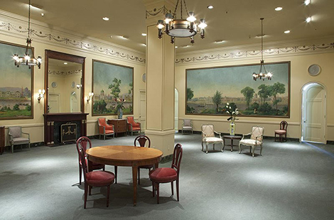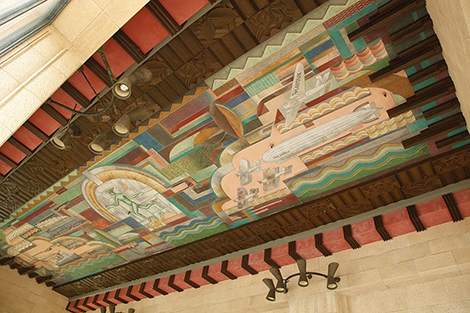 Showing Herman Sachs’ The Spirit of Transportation mural above the porte cochere. Image courtesy of Southwestern Law School. [used with permission] When construction was finished in mid-1929, the end product was a stately art deco confection of stone, terra cotta, copper and steel. In keeping with the building’s reverence for the automobile, the ‘main’ entrance was not necessarily the street entrance on Wilshire but, rather, the porte-cochere at the rear of the building that allowed drivers to pull up to the valet. Stepping out of the car, shoppers could glimpse overhead Herman Sach’s stunning mural “The Spirit of Transportation” that pays reverence to the transportation age almost as if it were L.A.’s answer to the Sistine Chapel. The interior space housed five sumptuous floors of quality goods and services - each room in the building was a design experience unto itself, intended to evoke an atmosphere that complimented the merchandise, a classic design was on display in what became known as the Louis XVI room while a more sleek, modern feel dominated the Frank Lloyd Wright-inspired design in the menswear department. The fifth floor housed the legendary tea room that would play host to countless numbers of influential personalities, celebrities from Hollywood’s golden age, as well as everyday Angelenos looking for a chic respite from a long day of shopping.