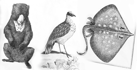 Animal designs are also extremely popular, especially cephalopods, birds, and butterflies. You can find many reference drawings of these and other inkable critters in the library’s collections of 18th-century and 19th-century animal illustrations, as meticulous as they are beautiful. And if you feel like strolling from the beaten path, may we suggest a Malayan sun bear, a Blood pheasant, or a skate or ray.