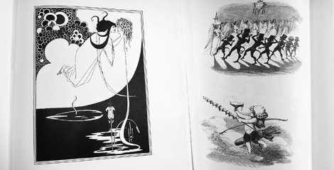 Skulls and angels are two more perennial favorites, and you can find unusual variations on those themes in medieval and Renaissance illustrations. This cupid, holding a cup of tears in one hand and a spit full of hearts in the other, is crying out to be tattooed on someone’s forearm. Aubrey Beardsley’s saucy and subversive illustrations for Oscar Wilde’s Salome are similarly inkable.