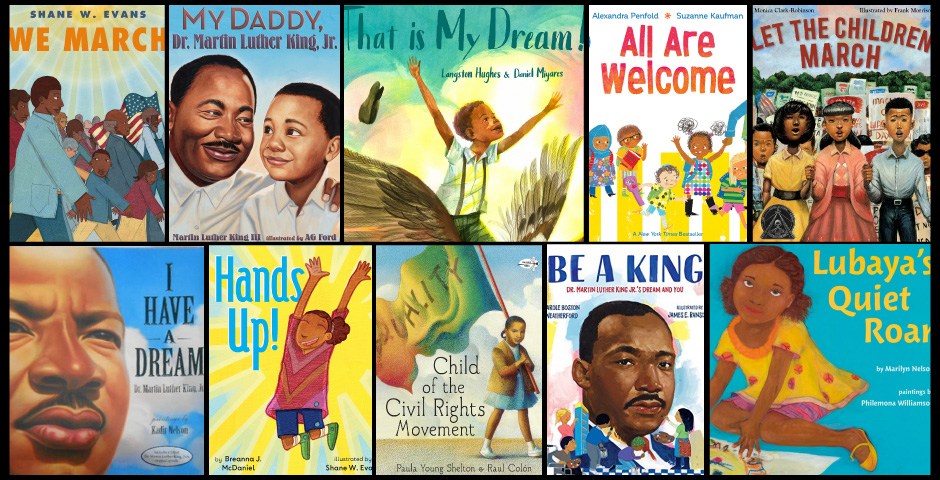 As we celebrate African American Heritage Month, here is a list of picture book titles that do just that. Here you will find a child’s eye view of the 1963 Birmingham Children’s Crusade; Let the Children March, written by Monica Clark-Robinson, which shows how children were able to play a crucial role in the Civil Rights movement; the vision of a child of color hearing the words “Hands Up!”; Hands Up!, written by Brianna J. McDaniel, in a multitude of positive scenarios; and a classroom where every child’s life is celebrated equally; All are Welcome, written by Alexandra Penfold. Not all of these books mention Dr. King explicitly, but all offer his perspective and inspiration to this generation of engaged, energetic, and hopeful children.