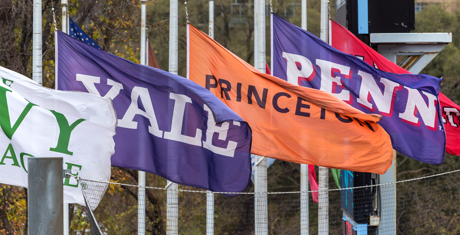 Flags of the Ivy League Universities fly over Columbia's Wien Stadium