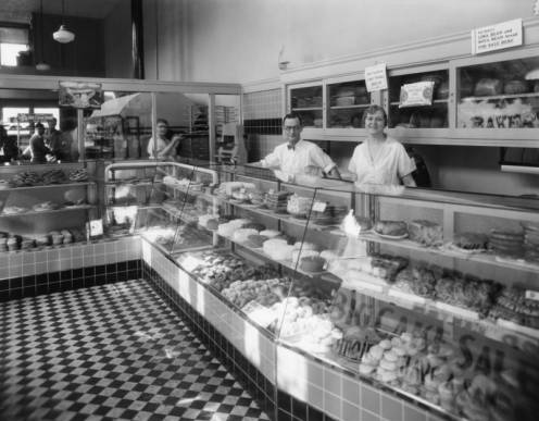 It wasn't until the 1920s that donuts really took off. An enterprising baker named Adolph Levitt created a machine to automate the doughnut-making process and as entertainment for people passing by his bakery. If you have ever stood in front of a bakery window and watched donuts being made, you will know the instant appeal and smell. As crowds in New York City excited the nearby theaters, the smell of frying donuts drew them in as did the little balls of dough going up into the machine. By the 1930s, Levitt was a multi-millionaire, and donuts were, "The food hit of the Century of Progress."