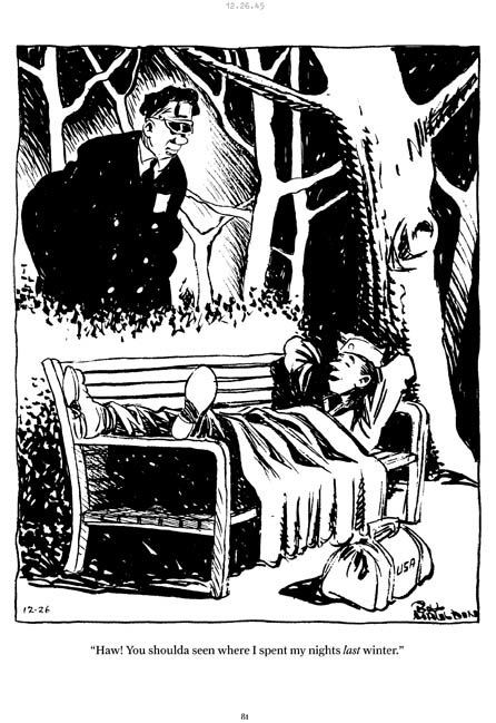 Pyle was incredibly influential on many, such as cartoonist Bill Mauldin, a Pulitzer-prize winning comic artist. Mauldin became prominent with his Willie and Joe cartoons about two ordinary GI’s. These cartoons dealt with the trials and tribulations of day-to-day soldiers and veterans. When Mauldin had been a soldier for three and a half years, Pyle wrote how “Mauldin’s cartoons in a way are bitter. His work is so mature… Yet he is only twenty-two… His maturity comes simply from a native understanding of things, and from being a soldier himself for a long time.”5