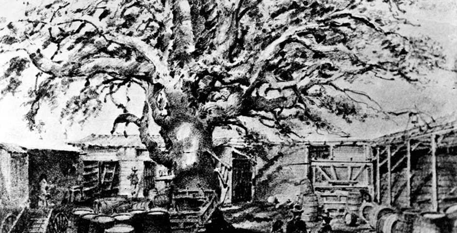 The sycamore tree was venerated by the indigenous Tongva people. They held meetings under the “council tree” and used it to figure distances. Traders used it as a landmark and guidepost. When Los Pobladores, the small band of Spanish settlers who founded Los Angeles, arrived in 1781, they set up camp under its shade. They called the tree “El Aliso,” Spanish for sycamore.