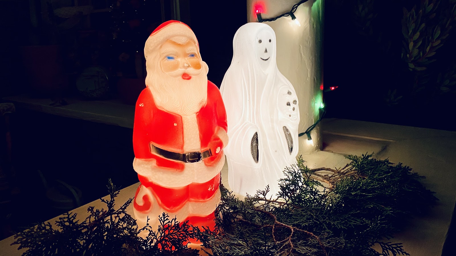 And, the old trappings never fail: a haunted manor, candlelight, malevolent portraits, dragging chains. Such an abundance of Christmas ghost stories were published in the 19th century that writers like Jerome K. Jerome were compelled to satirize their cliches, or Dickens, in “Christmas Ghosts” (1850):