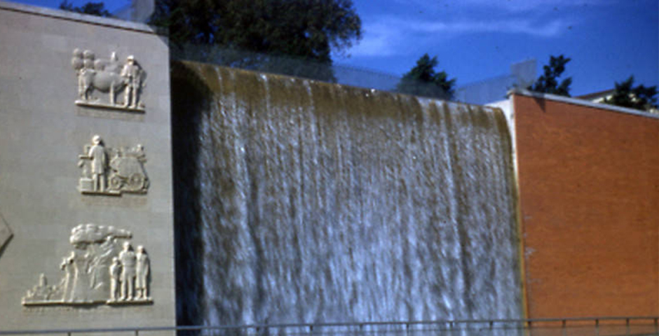 All of the nearly 300,000 tiles behind the waterfall had to be replaced. The one by two-inch size is no longer standard, so each tile had to be hand cut. In addition, there was a great deal of back and forth to recreate the original tile colors. Previous attempts to remove the graffiti did more harm than good. All of the plumbing had to be replaced, but as many of the original elements that could be saved were preserved.