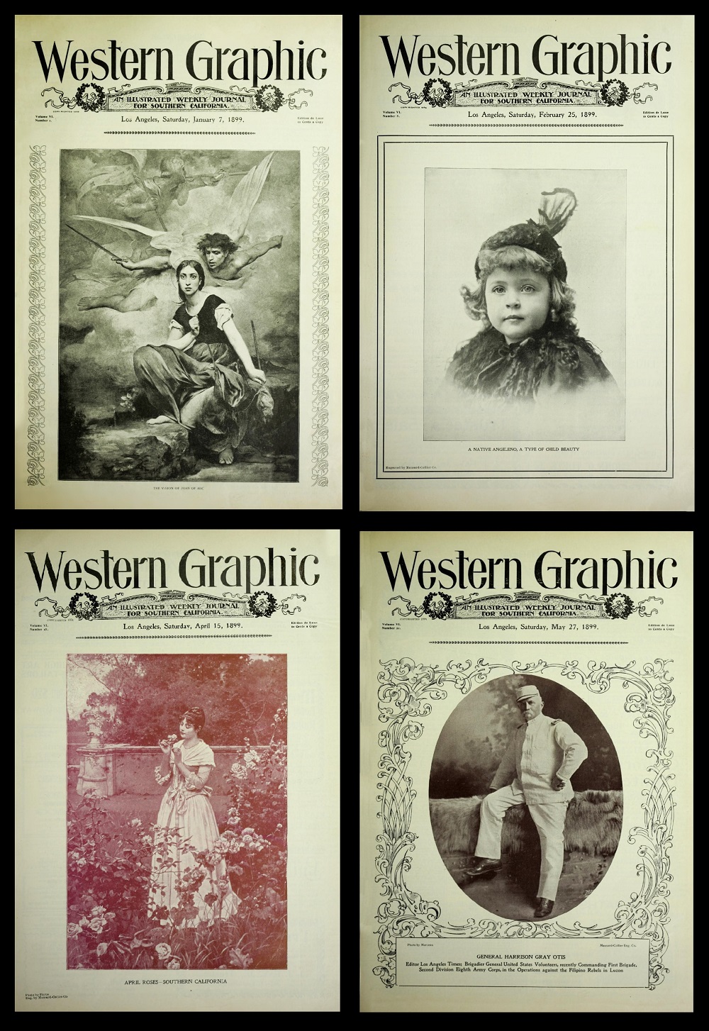 Published almost concurrently to The Capital was a similarly themed magazine, the Western Graphic. The Western Graphic was the creation of George Rice, a Civil War veteran who arrived in Los Angeles in the 1870s. Rice quickly became one of the city's leading businessmen with his family-owned printing & publishing business, George Rice & Sons. Rice owned a number of magazines in addition to the Western Graphic, most notably The Rural Californian. Like the man who founded it, the Western Graphic was highly regarded and praised throughout the local press and as "easily the first among all Southwestern publications" and "well up to the highest standard throughout the world." In terms of pure aesthetics, Rice's covers for the Western Graphic remain exquisite and, at times, stunning even more than a century later. They support the assertion that George Rice & Sons created quality prints and were unequaled in skill. The Times described the Spring 1899 edition (seen above) as "a magnificent number" and stated that "it would not be safe to dispute the publishers when they say this number is "the most pretentious, the most costly and the most beautiful newspaper ever printed in California."