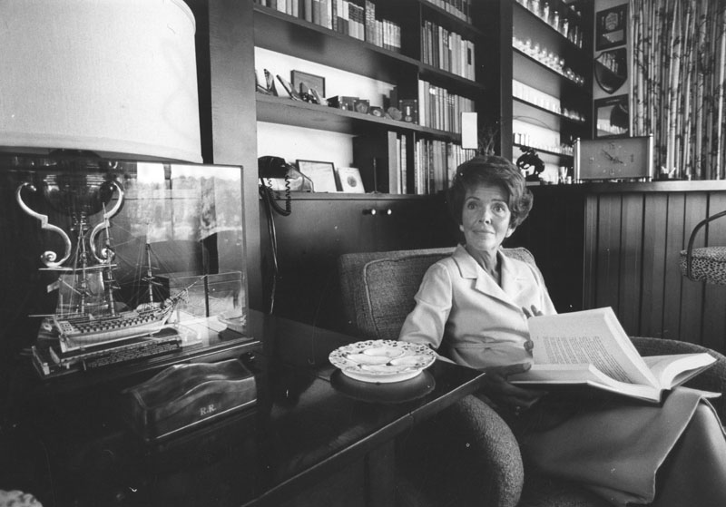 Gloria Swanson shows us how to relax poolside in the ultimate casual-chic sportswear, [1970]. Herald Examiner Collection