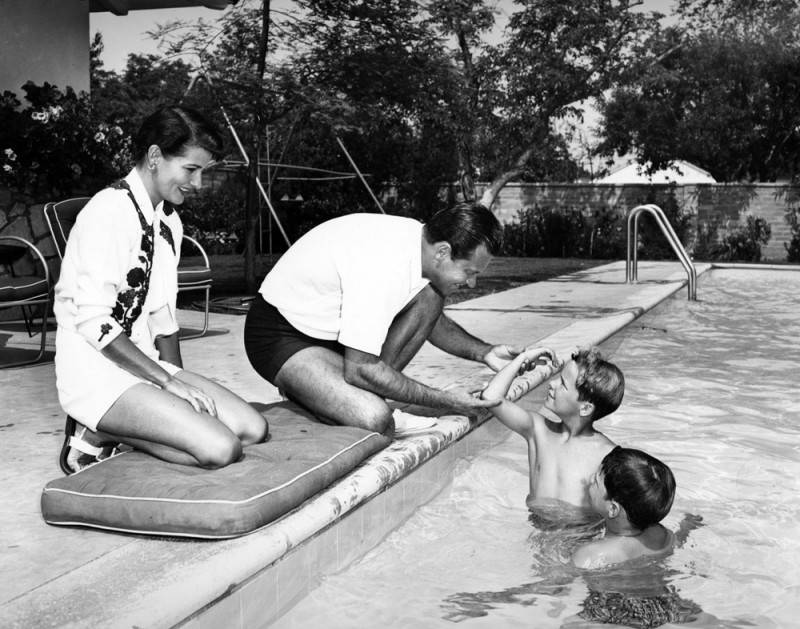 The Herald Examiner and Valley Times were local papers, covering local news, but when the locale is Los Angeles, it's likely the town's topics will involve celebrities. Prompted by publicists and producers, the famous cheerfully welcomed staff reporters into their homes to capture their everyday, off-duty lives. While the "candid" shots appeared posed, readers loved these intimate glimpses into the private world of their favorite movie and TV stars. They cooked, read and played with their children; they wore slacks, shorts, even Hawaiian shirts. Of course, upcoming premieres and episode appearances would be mentioned in the accompanying text along with some favorite recipes or beauty tips. Ironically, these features often appeared alongside the jarring contrasts of celebrity scandals, but perhaps that is what made the Valley Times and Herald Examiner so extraordinary: the sharp contrasts that make up life in L.A.
