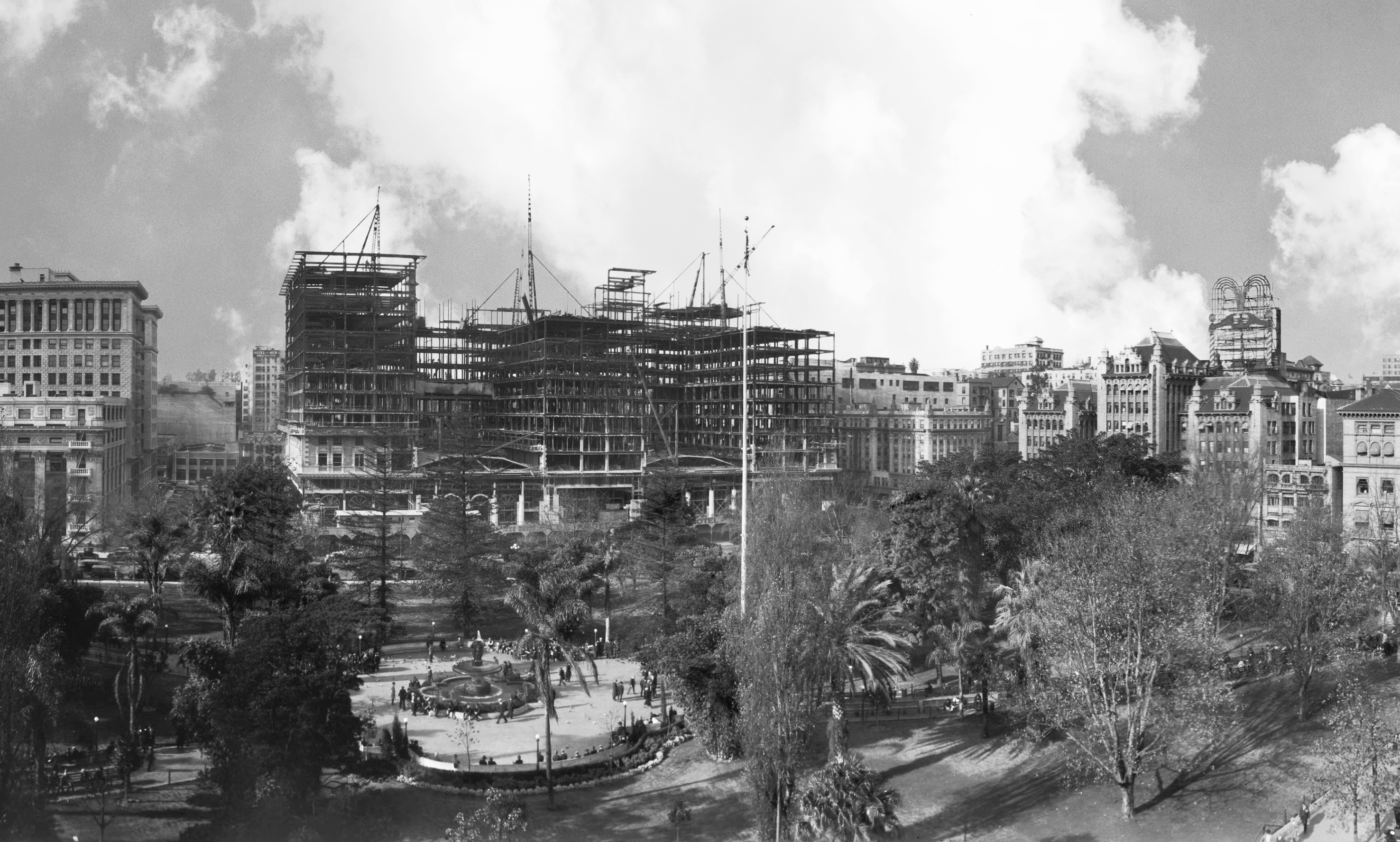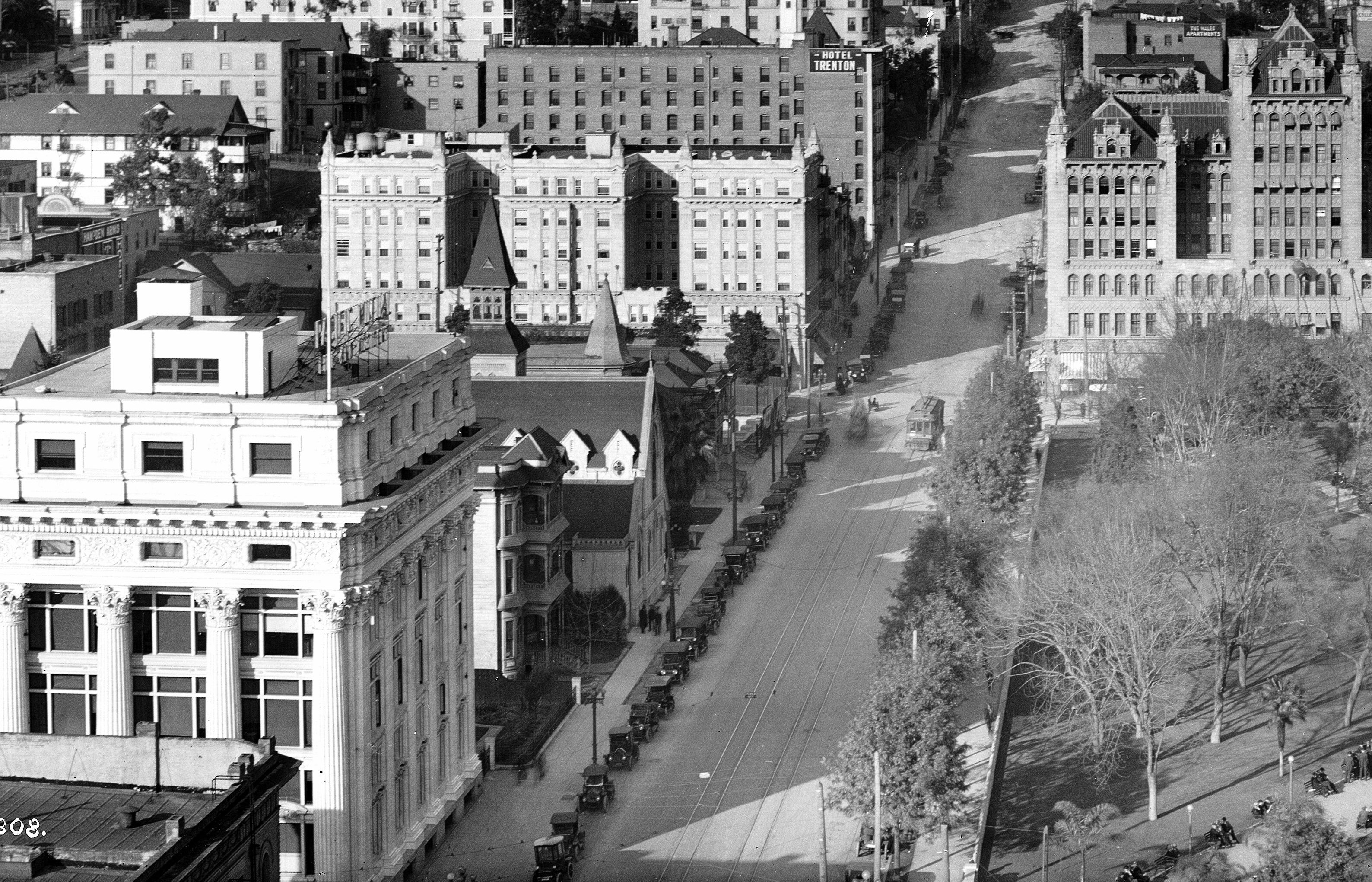 The 1920s was a transitional period in Los Angeles history when the final vestiges of the Victorian residential community surrounding Pershing Square were peeled away. While today we decry the loss of our Victorian-era architecture, by 1920, anything Victorian was seen as hopelessly dated, ugly, and decidedly not part of a modern civic vision. John Parkinson had created the ideal 'modern' civic centerpiece, and city oligarchs were determined to surround this oasis with sophisticated, modern buildings that would not only raise our civic profile but project their aspirations for our city. The block just west of Pershing Square was, most decidedly, not meeting anyone's objectives.