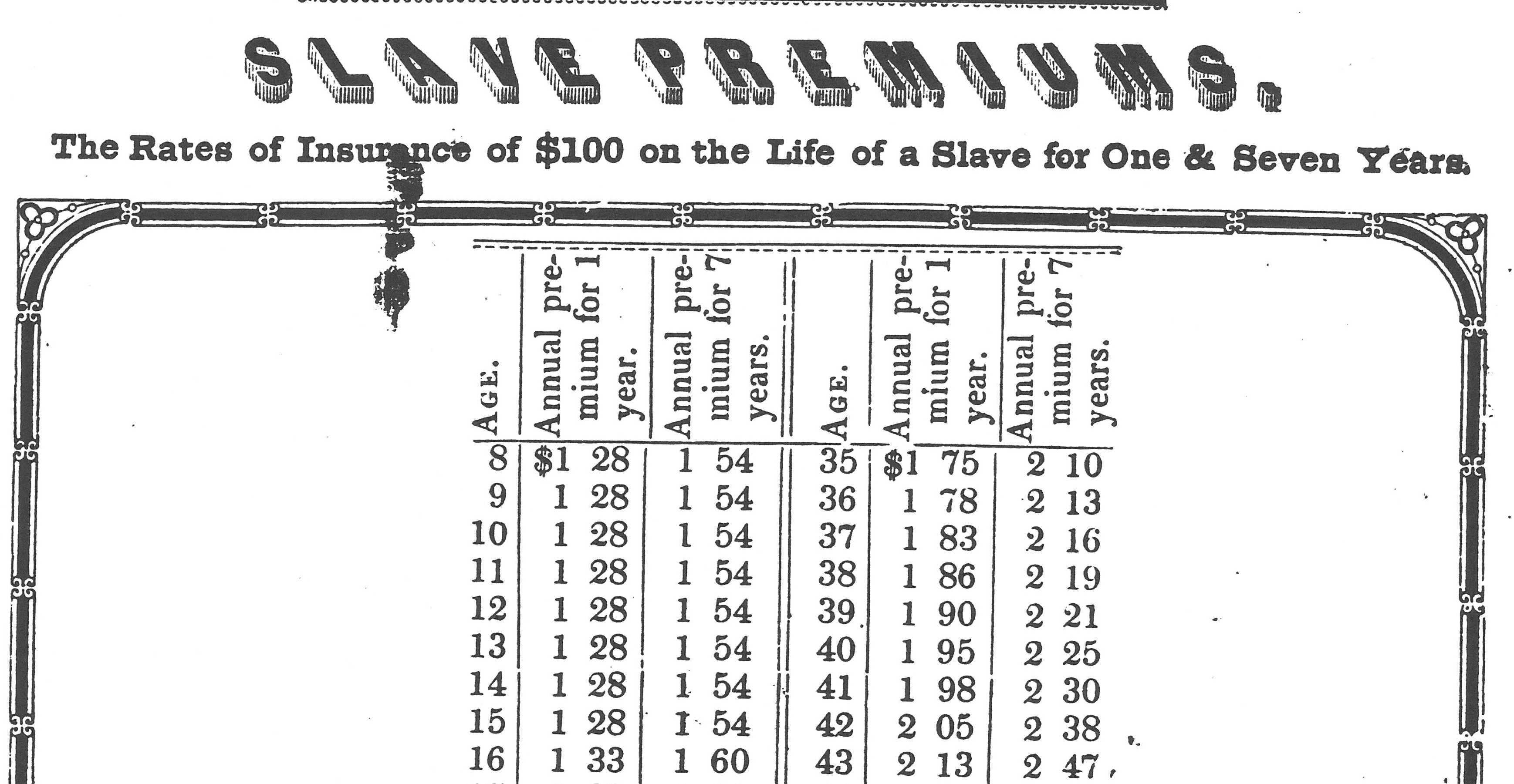 Insurance companies have long provided policies to cover losses of property but, before the end of the Civil War, this also included pay-outs for injury and death of the formerly enslaved. This slavery-era business precaution is not only a vivid example of the objectification of people as property, but it also shows that both sides of the Mason-Dixon Line profited from slavery, since many of these insurance companies were from the north.
