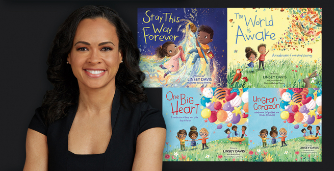 Linsey Davis is an Emmy Award winning ABC News Correspondent, filing reports for World News, Good Morning America, 20/20 and Nightline and she is also a bestselling author of the children’s books The World is Awake, and One Big Heart: A Celebration of Being More Alike than Different. Her books depict a diverse cast of characters that imparts lessons of acceptance, blessings, and kindness. Mrs. Davis gave us an interview about her book One Big Heart, which is now available in Spanish.