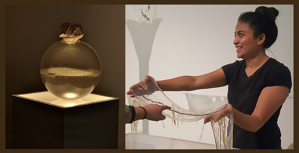 Membrane tension’s central material is Medusomyces gisevii, or what is commonly called SCOBY (a Symbiotic Culture Of Bacteria and Yeast) that is used to make kombucha tea. What initially inspired you to use this in your artwork?