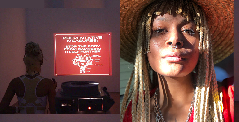 My practice is rooted in my existence within a chronically ill (sick)//disabled body, and I work in converging forms of media to embody and examine the immensely nuanced, overwhelming facets of the disabled experience. While I produce work across various mediums, performance lies at the crux of all my pieces. There is a cyclical and ever-morphing examination, documentation, and dissection of my own Body, but as my practice has developed, my Body has shifted from subject to material within my work.