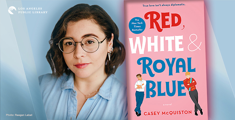 Casey McQuiston grew up in the swamps of Southern Louisiana, where they cultivated an abiding love for honey butter biscuits and stories with big, beating hearts. They studied journalism and worked in magazine publishing for years before returning to their first love: joyous, offbeat romantic comedies and escapist fiction. Casey now lives in the mountains of Fort Collins, Colorado, with a collection of caftans and her poodle mix, Pepper. Red, White & Royal Blue is their first novel and they recently agreed to be interviewed about it by Daryl Maxwell for the LAPL Blog.