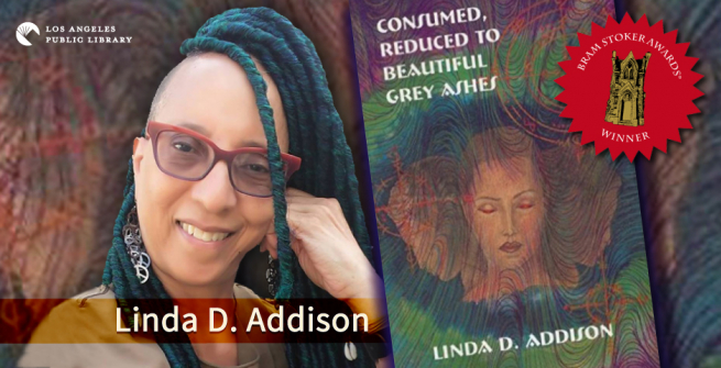 Linda Addison is an award-winning poet and author writing in the genres of Fantasy, Horror and Science Fiction. In 2001, she became the first African-American writer to win a Bram Stoker Award for her poetry collection Consumed, Reduced to Beautiful Grey Ashes and she has gone on to win the award three more times. In March of this year, Addison was awarded the Stoker Lifetime Achievement Award. Her latest collection, Sycorax’s Daughters, co-edited with Kinitra Brooks, PhD and Susana Morris, PhD was also nominated for a Stoker this year. Ms. Addison recently agreed to be interviewed by Daryl Maxwell for the LAPL Blog.