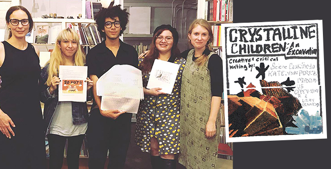 We facilitate college-level interdisciplinary youth workshops (for us Humanities includes a combination of literature, poetry, critical theory, history, politics, visual art, and cultural studies among other fields) around specific themes. We did a summer creative writing workshop at the Edendale Branch Library in 2019, and that’s where we made the zine: Crystalline Children, which is now in Edendale's zine collection.