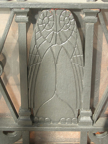 The third owl is an elegant metalwork on the gates of the Hope Street tunnel.