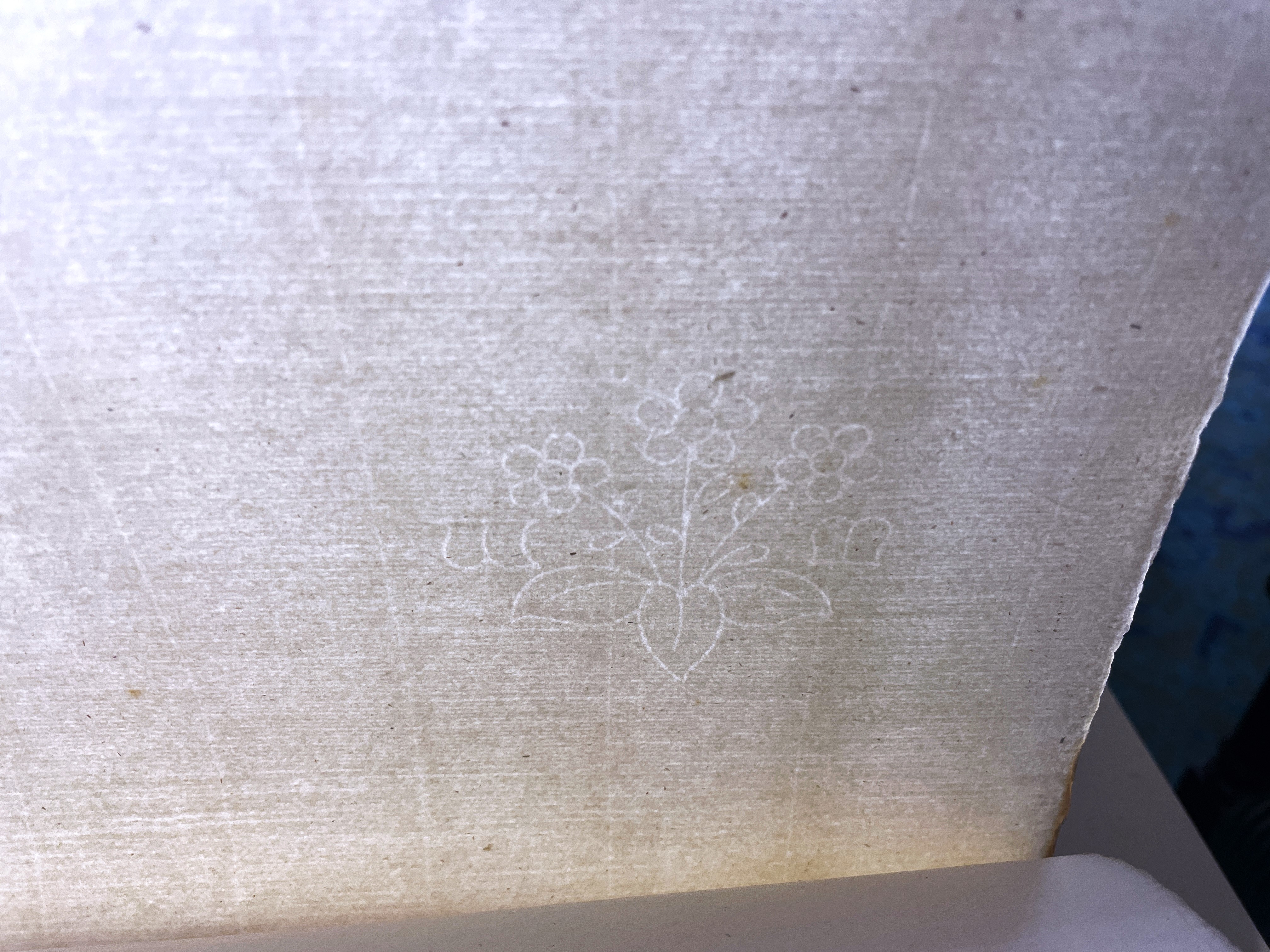 The papers used in Kelmscott Press books were also made to William Morris’ exacting standard and vision from Batchelor came in various sizes, distinguished by different watermarks: