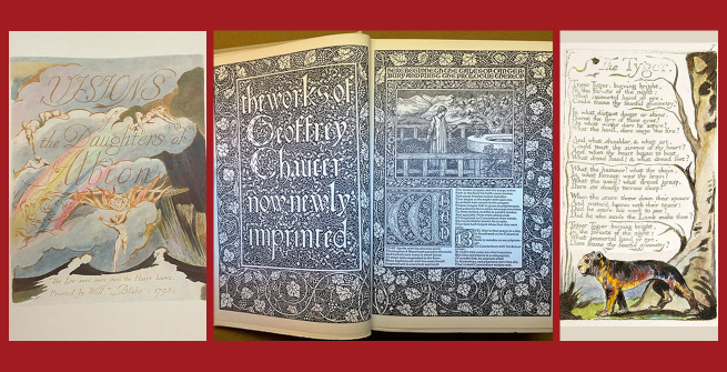 In continuing the exploration of the history of the book through the holdings of Los Angeles Public Library’s Special Collections, this installment will cover three notable publishers of books: William Blake and his self-published books, Kelmscott Press (1891 – 1898) and Doves Press (1900 – 1916).