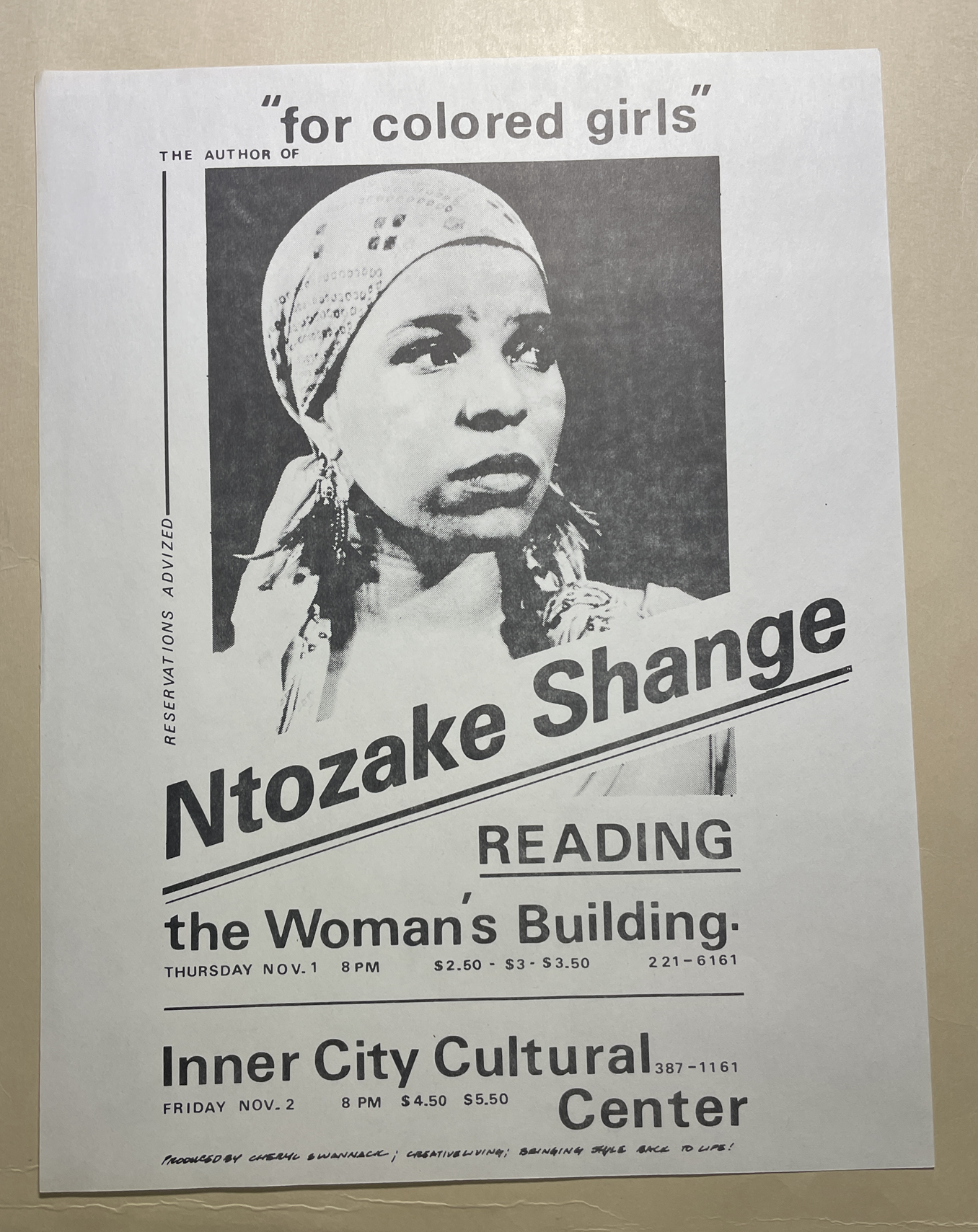 To further research beyond just the book holdings at Central Library, Special Collections has a small archival collection of printed ephemera from the Woman's Building's heyday. Archives collect materials from individuals, groups, institutions, and governments that contain information of enduring value and can, especially in a case like the Woman's Building, offer first-hand primary source information using the actual materials originally created for the use by the person or group.