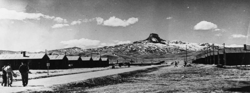 Panoramic view of Heart Mountain Relocation Center, the WWII Japanese American internment camp in Wyoming, [ca 1943]. Shades of L.A.: Japanese American Community