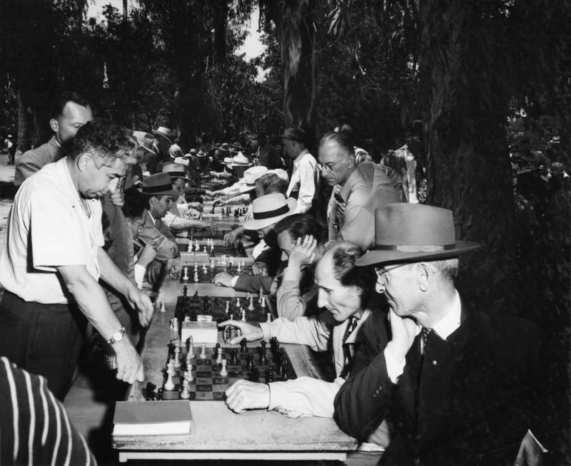 National Chess Day is the second Saturday in October. If you have your chili, your kraut sandwich, and your pumpkin spice, and you have roller-skated and traded some cryptocurrency, you are probably ready for a nice game of chess. This ancient game, of which there have been versions throughout history and around the world, is the clash of two players marshaling armies of little kings, queens, bishops, knights, rooks, and pawns. The pieces are moved around the squares of the board in various rule-determined ways to eliminate their opponents until there is a draw, or one side puts the other's king in checkmate. There is no element of chance or hidden knowledge in chess, just pure strategy. In the 80s, this seemed like a good test case for computer programming, and as chess-playing programs were developed, fans wondered if they would ever get powerful enough to defeat the best human players. That eventually came to pass in 1997 when Deep Blue finally beat world champion Garry Kasparov; since then, computers have only gotten faster and smarter. During the 2020 pandemic, Netflix's miniseries adaptation of Walter Tevis' 1983 novel The Queen's Gambit was a hit with homebound viewers, kicking off a new interest in chess among the younger generation.