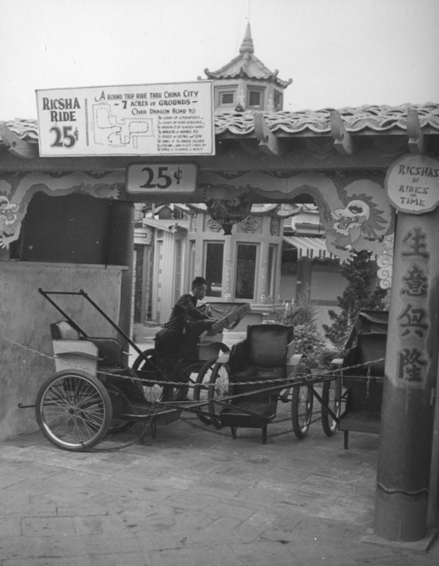 A rickshaw stand in China City, ca. 1939. (Herman J. Schultheis Collection)