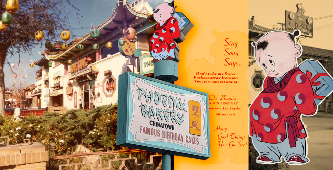 Long-time visitors of Chinatown will be very familiar with the storefront with Sing Song, a Tyrus Wong (1910-2016) drawn logo of a bashful little boy in a traditional Chinese haircut with a robe holding a box behind his back with the tagline "sweets for the sweets." Phoenix Bakery, the shop with this famous sign, is a legacy business in Chinatown, first established in 1938 by Fung Chow Chan (1909-2001) and his wife, Wai Hing Chan, née Leong (1918-1994), the year that new Chinatown was built, after the residents of old Chinatown were pushed out.