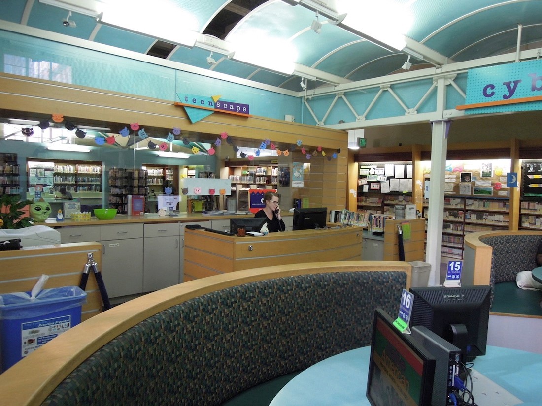 Senior Librarian Mary McCoy at the Teen'Scape Desk
