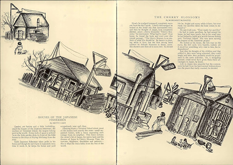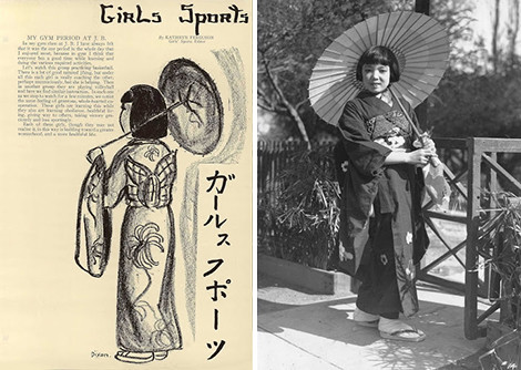 John Burroughs Junior High School, taking its namesake from a naturalist and essayist along the lines of Henry David Thoreau, first opened its doors in 1924 with 23 teachers and approximately 400 students. The school, located in in the Mid-Wilshire area of Los Angeles, still operates as part of the Los Angeles Unified School District (LAUSD). Like most schools, the kids at John Burroughs Junior High School were responsible for producing a themed yearbook that would reflect on the passing of an academic year. While most yearbooks seem determined to impose contrived nostalgia or other sentimental themes, the kids at Burroughs chose to use their book as a means to celebrate the social and cultural aspects of Los Angeles. Beginning around 1933, their yearbook, Burr, began to reflect the kids’ interest in subjects such as architecture, the film industry and other topics that seemed tied to what was going on in Los Angeles at the time. Their yearbooks were brought to fruition with original artwork, as well as first-hand stories and poems that individual classes contributed. For the Winter 1937 edition, the children at John Burroughs Junior High School chose to dedicate their yearbook to the thriving Japanese community of Los Angeles.