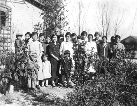 Walizer, a northern California native had come to East San Pedro to act as an “Americanization” teacher at the East San Pedro School around 1918. By most accounts, her methodology wasn’t as ‘assimilationist’ as one would expect, particularly for the period. In fact, she was proud of her school’s unique identity and she was enamored with the surrounding community. She allowed the grounds of the school to be developed in the style of a traditional Japanese garden with a red lacquer bridge which became a recognizable community landmark; she was also photographed wearing a traditional Japanese kimono on festive occasions. Walizer had a genuine affinity for the Terminal Islanders and they shared that affinity for her. She spent many of her off hours visiting families and helping them out in whatever way she could. Terminal Islander, Teruko Miyoshi Okimoto, remembered: