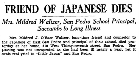 Mr. Otsuji Hara, President of the Japanese Association told the LA Times in 1930 that “Mrs. Walizer has been like one of us. She was more than a teacher; she came into our homes and helped us night and day with our problems.”