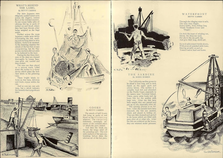 Three of the Burroughs children wrote a feature in the yearbook that relayed their field trip to Terminal Island. The trip was intended to connect with their Nisei counterparts at the East San Pedro School as well as their Issei parents to see what daily life was like in this L.A. community that was so heavily invested in the fishing industry. What becomes clear is that the Terminal Islanders who met with the children were welcoming and eager to show the hard work that they endured day after day. Of their visit, the Burroughs kids wrote the following: