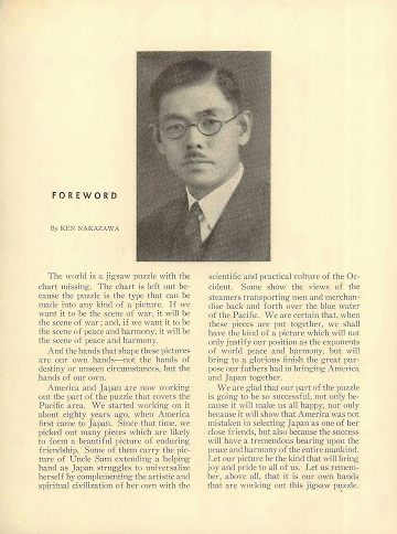 Another extraordinary aspect of this yearbook is that it features a foreword by Ken Nakazawa, a writer, and professor of Japanese literature and culture at the University of Southern California (USC). Nakazawa was born in Japan and educated in the United States where he earned his Ph.D. He took a position at USC beginning in 1926 and became the first person of Japanese descent to teach at a major university in the United States. In the 1930s, he was hired by the Japanese consulate in Los Angeles to act as a spokesman on behalf of the Japanese government with the aim of building a better understanding of Japan and Japanese culture within the United States. By 1934, Nakazawa was credited with giving nearly 150 speeches to the American public as a diplomat. One of the yearbook staff, Betty Jane Reed, does report of meeting with the Japanese consulate but Nakazawa is never mentioned specifically. Interestingly, the yearbook does report that Mrs. Nakazawa visited Burroughs to teach the children Ikebana, the art of Japanese flower arrangement. Following her visit, the children were able to explain the basics of Ikebana: