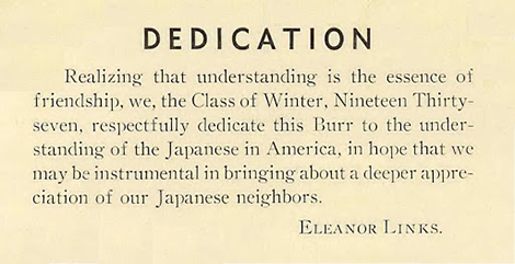 As you know the Burr is a memory book for the Seniors which they will probably keep all their lives to recall their pleasant days here. Therefore we tried to make this one more interesting for them as well for everyone. We have more in here about them and about the whole student body, but there is also the fine theme of understanding the Japanese in America.