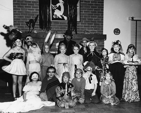 Children in costume pose at a Halloween party at Avalon Gardens on October 31, 1950. Photo credit: Leonard Nadel, Housing Authority Collection