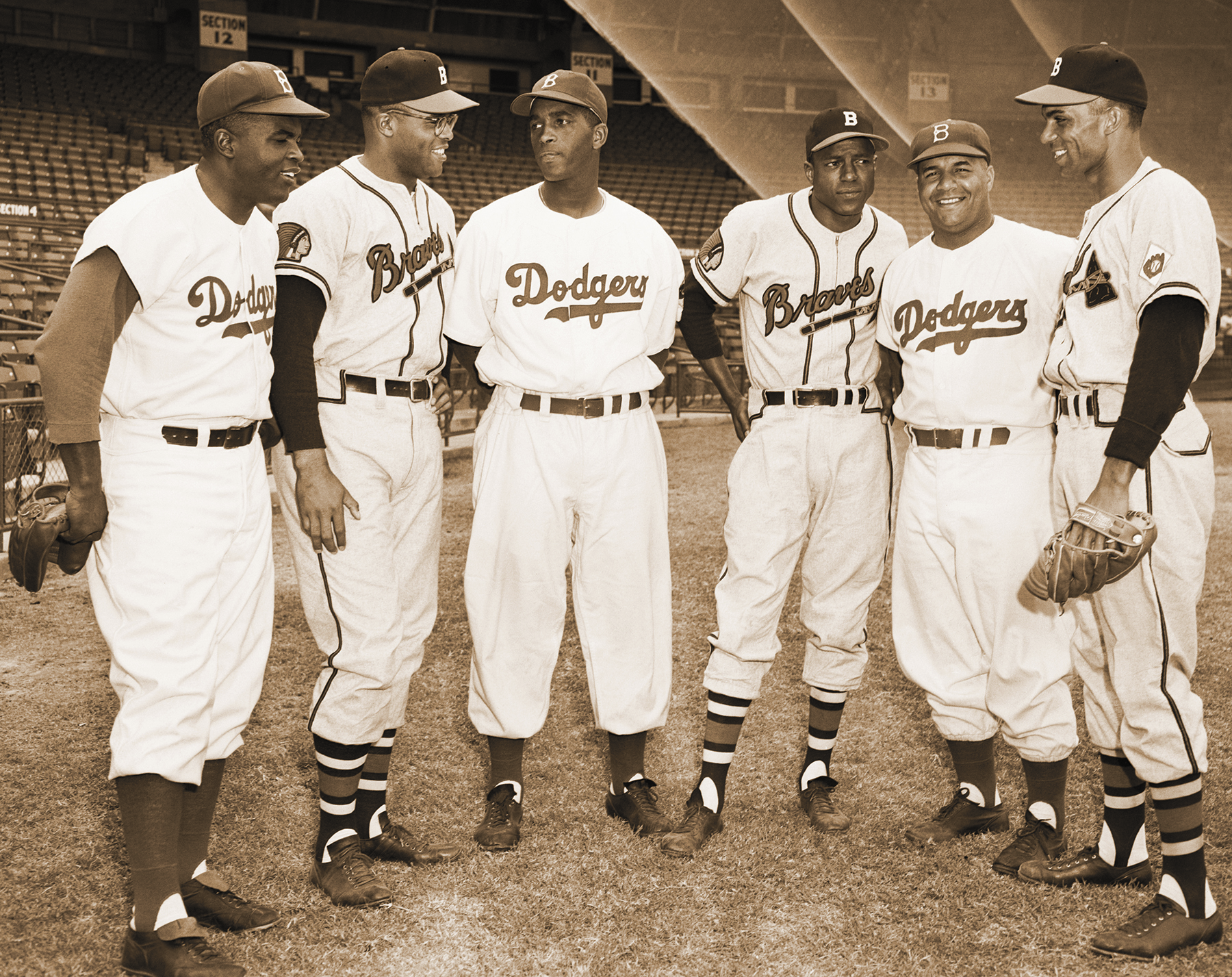 From (l.-r.): Jackie Robinson, George Crowe, Joe Black, Sam Jethroe, Roy Campanella and Bill Bruton were dynamic Negro Leagues and Major League players.