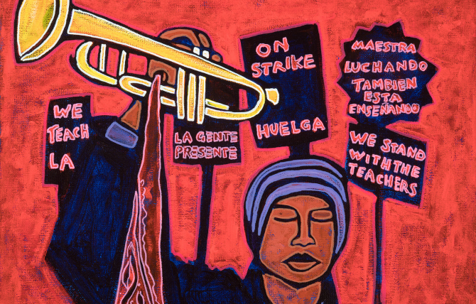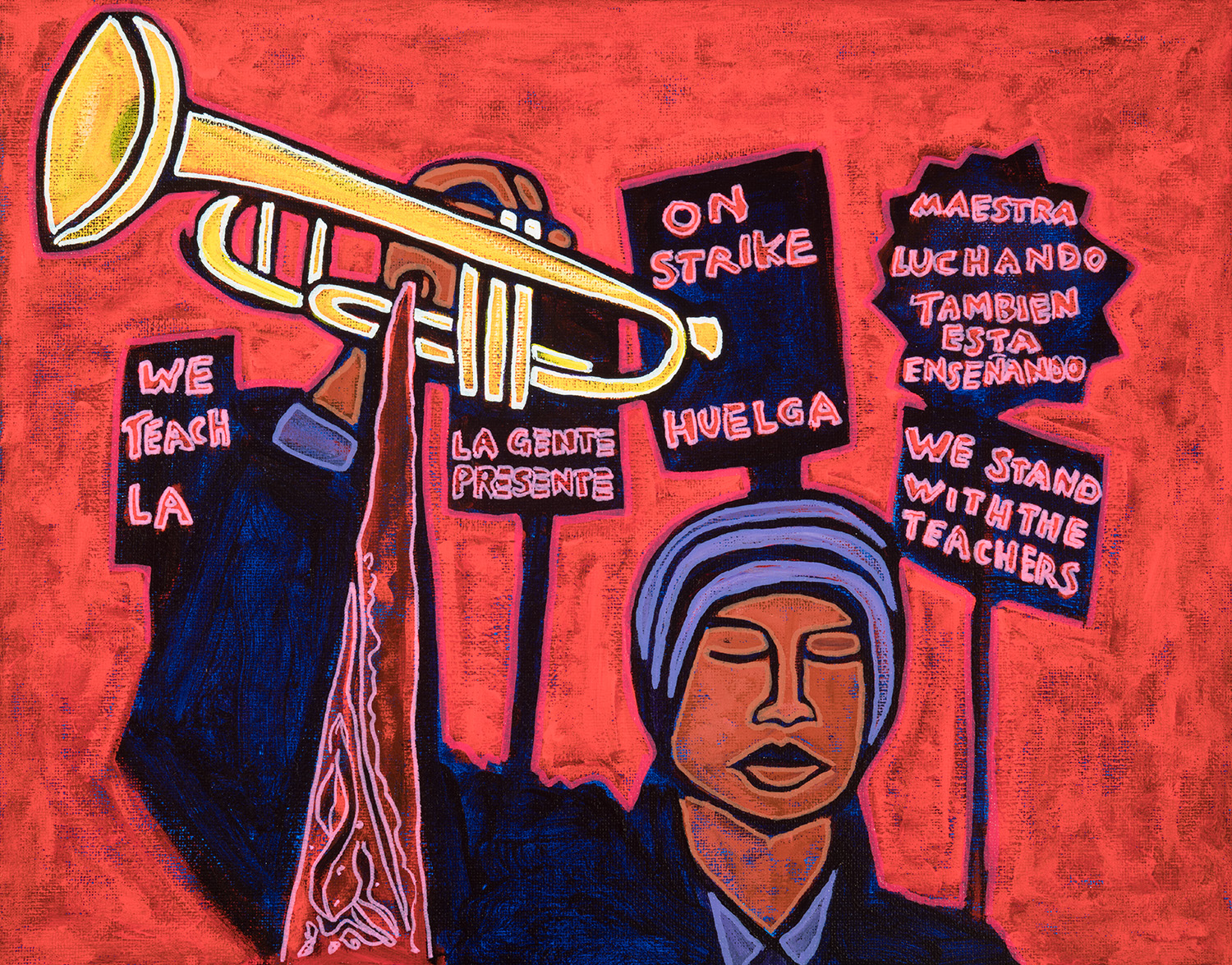 Jose Ramirez (nacido en 1967) es un artista, maestro y jardinero urbano. La inspiración de sus pinturas son extraídas desde las profundidades de su herencia mexicoamericana y están arraigadas en el área metropolitana de Los Ángeles, la casa de su familia desde la década de 1920. Criado en El Sereno, con breves temporadas en Arizona y el área de la bahía de San Francisco, Ramirez ha dedicado su arte a capturar las condiciones sociopolíticas, económicas y culturales únicas que conforman la vida Latina en el sur del país. Influenciado por el muralista Diego Rivera, José Clemente Orozco y David Alfaro Siqueiros (Los Tres Grandes) y por el movimiento populista de arte chicano de la década de 1960, las obras de Ramirez presentan una serie de lugares y personajes misteriosos—trabajadores humildes, guerreros antiguos, gánsteres, obreros, niños inocentes y criaturas místicas que estimulan la imaginación. Se ven en contra de exuberantes jardines tropicales o en el horizonte irregular del centro de la ciudad, como centinelas antiguas, reflejando la historia y la experiencia única de México.