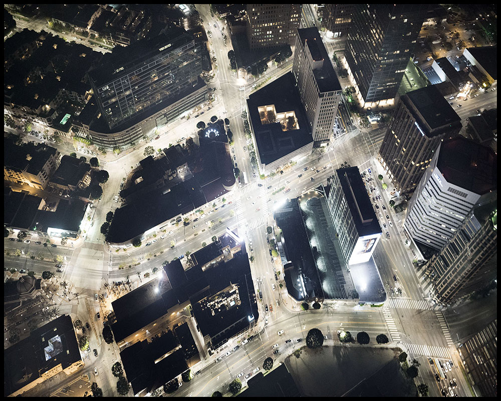 For the last fifteen years, Michael Light has aerially photographed over settled and unsettled areas of American space, pursuing themes of mapping, vertigo, human impact on the land, and various aspects of geologic time and the sublime. A private pilot, he is currently working on an extended aerial photographic survey of the inter-mountain Western states, and in 2007 won a John Simon Guggenheim Foundation Fellowship in Photography to pursue this project. This exhibition features his work in Los Angeles, taking aerial views of the city at night and during the day. His book on the subject, entitled LA Day/LA Night, was released by Radius Books in the Spring of 2011.